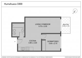 Departamento de 2 ambientes, 6 años de antigüedad, balcón aterrazado al frente y apto profesional. Unidad de casi 39 metros cuadrados que originalmente era de 1 ambiente, pero debido a su cómoda distribución y su doble ingreso de aire y luz (ventana y ventanal), se modificó para crear un cómodo departamento de 2 ambientes. La unidad está compuesta por cocina integrada con muebles bajo mesada, alacena, cocina eléctrica, conexión para lavarropas y termotanque eléctrico individual, baño completo con bañadera, dormitorio con placard, living comedor en “L” con aire acondicionado y gran ventanal hacia el balcón aterrazado. Artefactos de luz led en todos los ambientes. Excelentemente ubicado en los límites de los barrios de Almagro y Balvanera. A tan solo 100 metros de la Avenida Corrientes y cerca de otras principales avenidas tales como; Córdoba, Pueyrredón, Rivadavia, Medrano y Díaz Vélez. Rodeado de numerosas líneas de colectivos, a una cuadra de la estación Carlos Gardel del subte línea "B", a 6 de la estación Corrientes del subte línea "H" y a 8 de la estación Loria del subte línea "A". A media cuadra del Shopping Abasto, en un entorno comercial y gastronómico. Expensas Ordinarias $ 8.725.- (enero 2023) Expensas Extraordinarias $ 2.792.- (enero 2023). ABL $ 1.210.- (noviembre 2022). Accesible: No (Ley 5.115). Medidas individuales de la unidad: Living comedor: 5,75 x 2,55 Dormitorio: 2,73 x 2,95 Balcón aterrazado: 2,85 x 1,55 Espacio de cocina: 3,81 x 2,15 Baño: XX x XX Características generales del edificio: No posee encargado, las tareas de mantenimiento se realizan 4 veces a la semana por 3 horas cada día. 8 pisos de altura. 4 unidades por piso. Circuito cerrado de cámaras de seguridad. Gran terraza de uso común. - - - Toda la información del aviso, incluyendo medidas, precio, impuestos, servicios, etc. son estimativos, sujetos a modificación y no vinculantes, según lo dispuesto en el art. 973, Cód. Civ. y Com. Toda la información del aviso, incluyendo medidas, precio, impuestos, servicios, etc. son estimativos, sujetos a modificación y no vinculantes, según lo dispuesto en el art. 973, Cód. Civ. y Com.